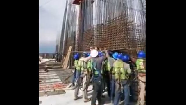 El video publicado en redes sociales muestra a los trabajadores con sus equipos de protección sosteniéndose de las varillas de la edificación, ubicado a 267.3 metros de altura.