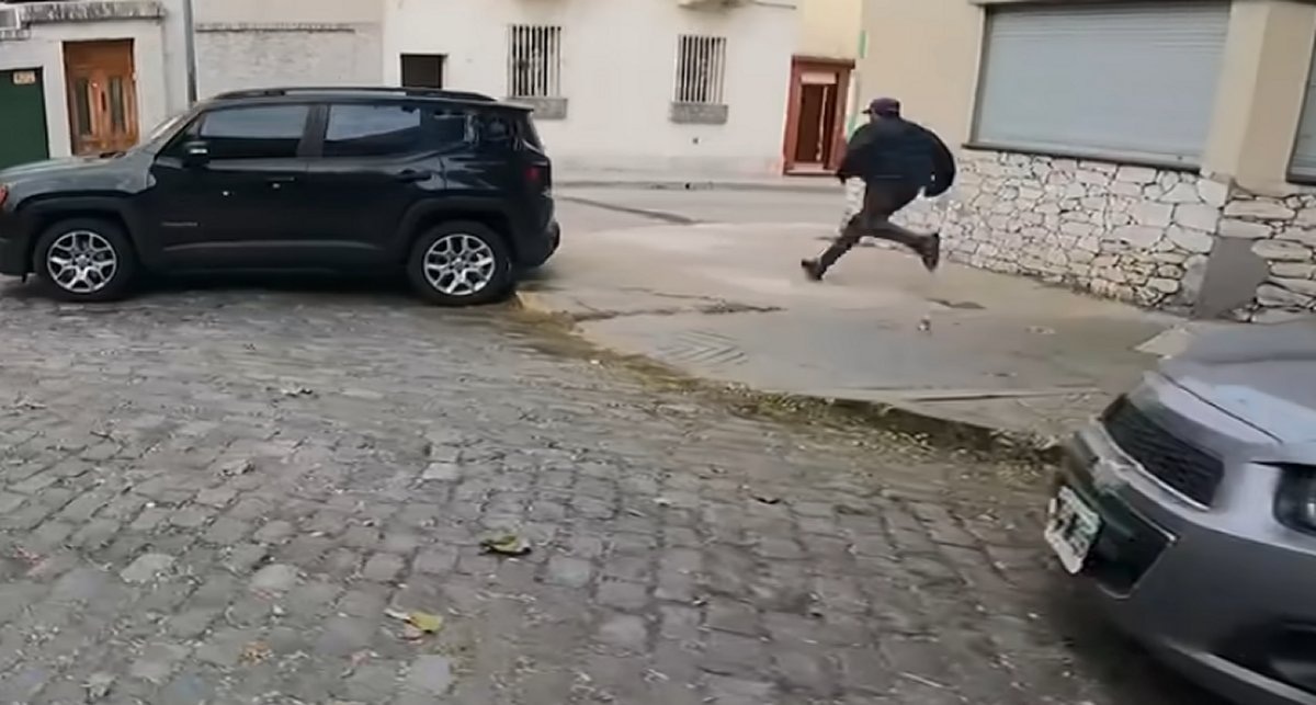 Este buen ciudadano grababa un video para su canal de YouTube GÑ Motovlog en las calles de Buenos Aires cuando visualizó a un hombre correr a toda prisa.