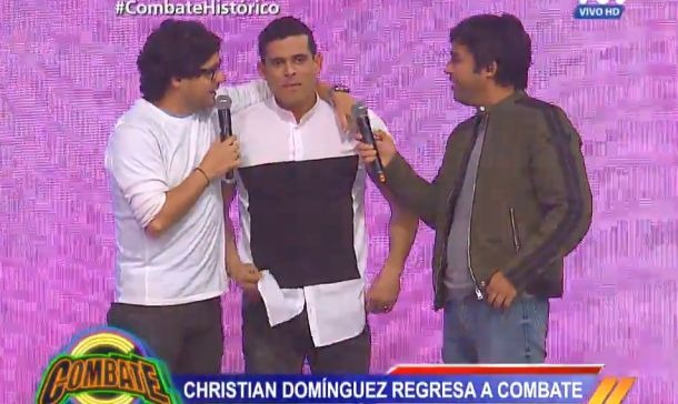Christian Domínguez se mostró contento de regresar a 'Combate' y se tompo deportivamente las bromas que le hicieron los conductores, que comenzaron a toquetearlo en el rostro. Asimismo, remarcó que actualmente está muy enamorado de Isabel Acevedo, aunque no se extendió en el tema en 'Combate'.