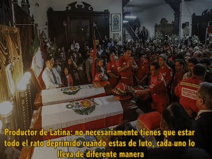 Viuda: "No sé si ustedes han ido a ofrecerles o cómo habrá sido pero supuestamente La Roma está de duelo. Nosotros estamos de duelo ahorita, yo no sé cómo pueden bailar los bomberos. Si hace una semana hemos estado... recién hace 2 o 3 días, el 18...