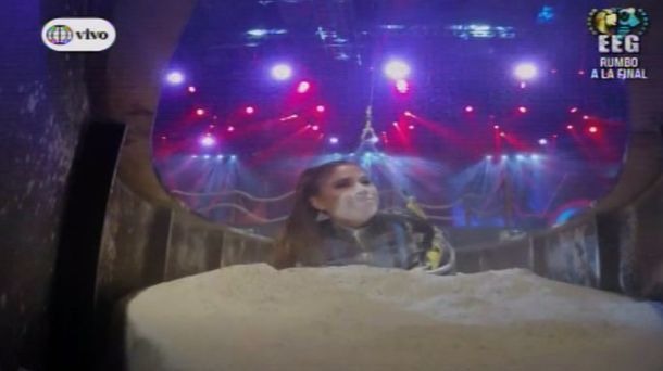 La cantante cayó con todo y se fue de nariz contra la harina. "¡Qué buen caída!", manifestaron los conductores de 'Esto es Guerra' tras la aparatosa caída de Yahaira Plasencia.