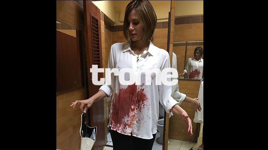 Lo más fuerte del asunto es que está rondando una fotografía en la que aparece la actriz Karina Calmet, quien hace el rol de Isabella en Al fondo hay sitio, con la blusa manchada de una sustancia roja.