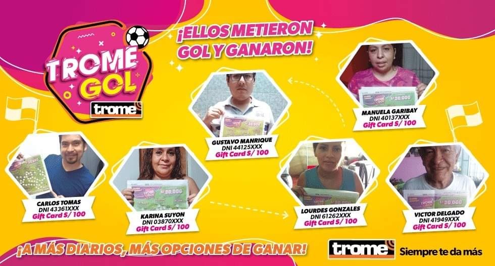 ¡Ni la cuarentena detiene al ‘diario papá’ cuando se trata de premiar a sus lectores! Por eso, el Trome Gol continuará dando diversión y premios de hasta 20 mil soles. Aquí te presentamos a varios ganadores.