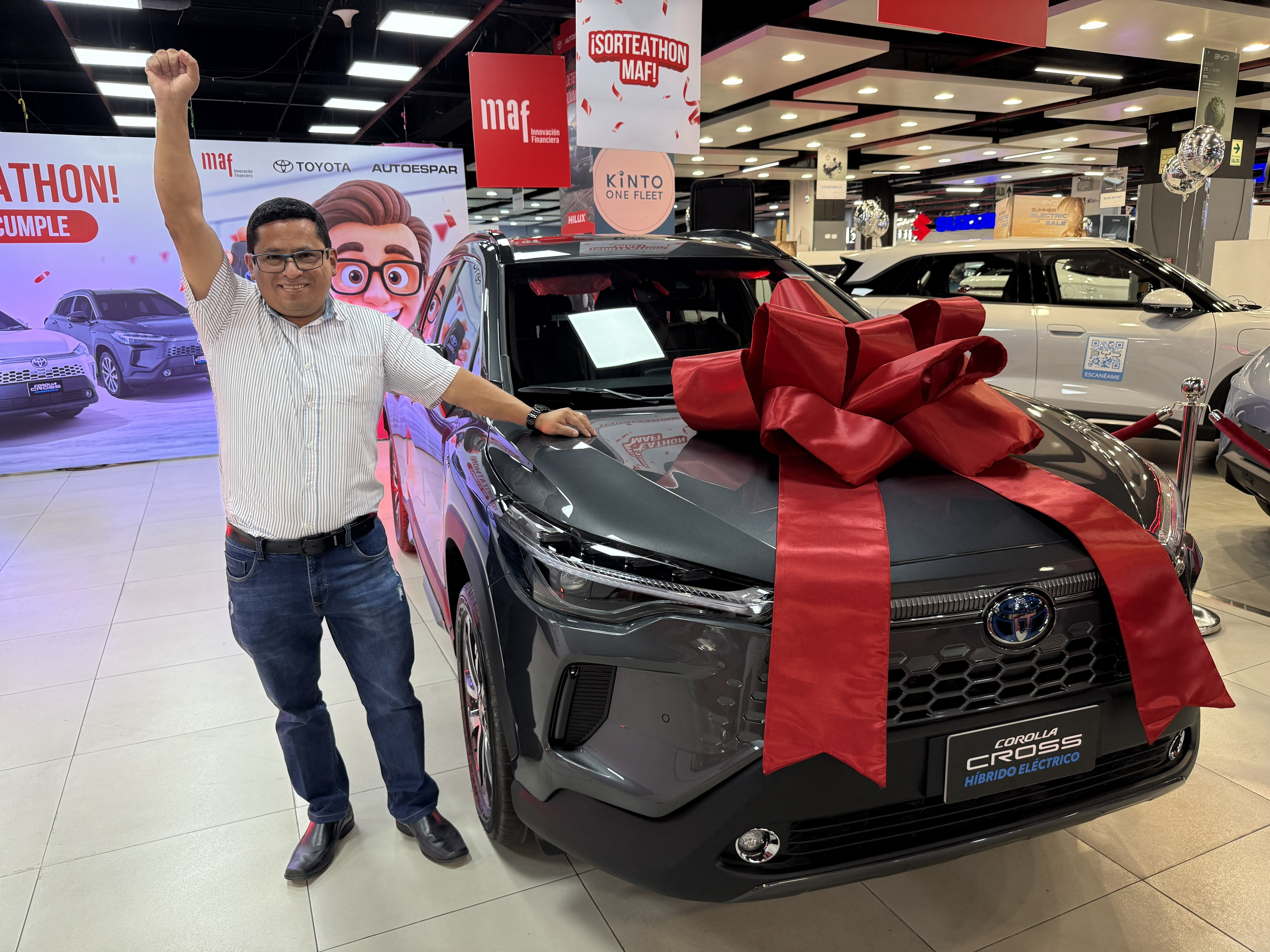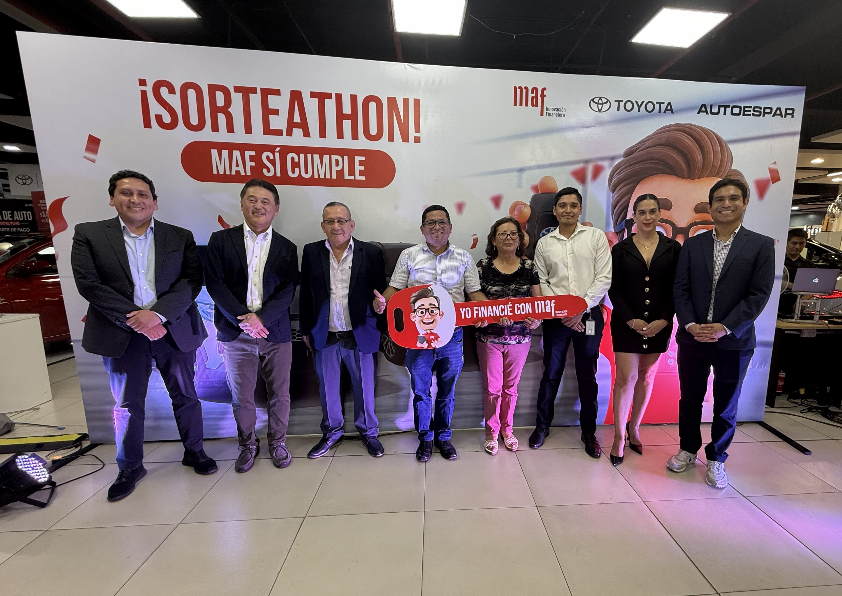 El SORTEATHON estuvo abierto a todos los clientes que desembolsaron un crédito vehicular con MAF como parte de la campaña TOYOTATHON. La dinámica fue clara: si financiabas tu auto con ellos entrabas automáticamente al sorteo para ganarte uno nuevo. Miles de clientes participaron y el señor Rivas fue uno de los flamantes ganadores.
