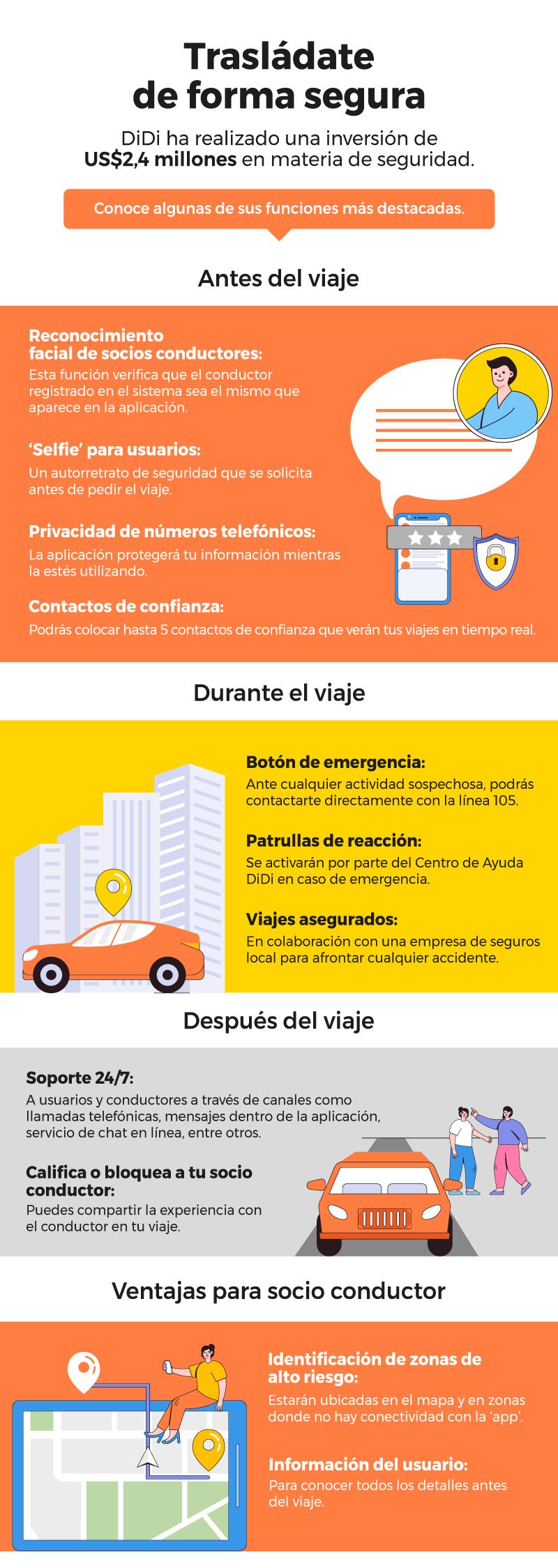 Ante esta problemática, DiDi ha dado un paso adelante. Este aplicativo, que llegó al Perú en octubre de 2020, se ha posicionado como la empresa de movilidad más confiable a nivel nacional. ¿Por qué? Gracias a sus más de 20 funciones de seguridad avanzada y los filtros de seguridad robustos que se aplican en todos los registros de los usuarios, los pasajeros pueden trasladarse de forma segura.