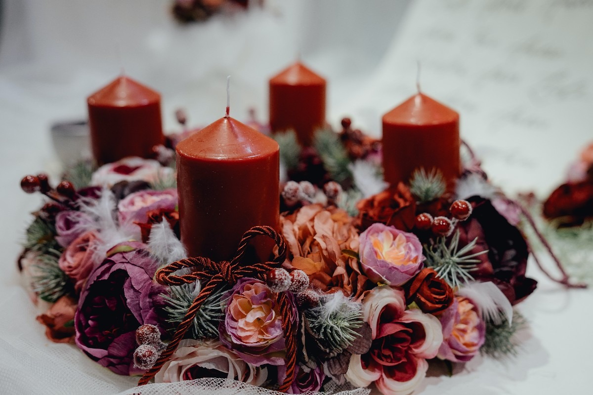 Sin embargo, explican que en algunos lugares todas las velas se sustituyen por velas rojas y, en la noche de Navidad, se coloca una vela blanca en el centro que simbolizan a Cristo como centro de todo.