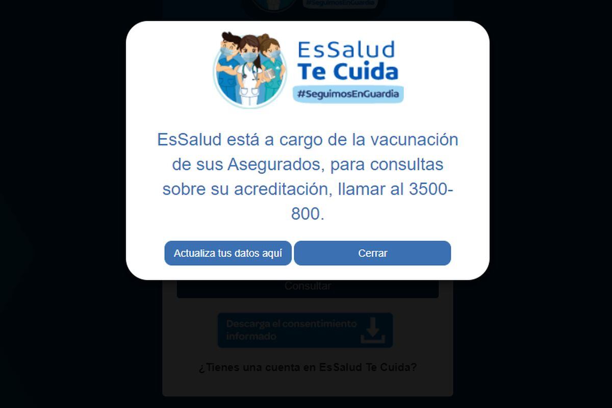 Otra forma de conocer el lugar, fecha y hora para recibir la dosis es ingresando a la plataforma “EsSalud te cuida” o haciendo CLIC AQUÍ.