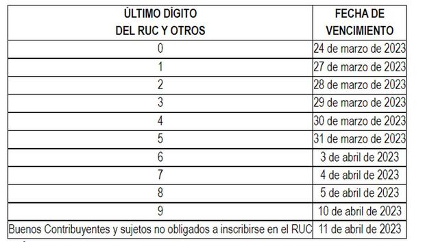 La Sunat recomendó no esperar el cronograma final de vencimientos, que va del 24 de marzo al 11 de abril 2023, según el último dígito del RUC, para presentar la declaración.