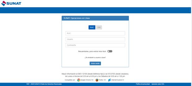 - Ingresa al módulo Sunat Operaciones en Línea con su Clave SOL
