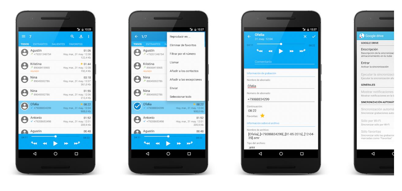 Es de las aplicaciones más populares para la grabación de llamadas en Android. Tiene una interfaz muy limpia y hace todo lo que necesitas: tus llamadas se pueden almacenar en Google Drive o en Dropbox, grabarlas automáticamente y organizarlas. Automatic Call Recorder tiene una versión gratuita y otra que se paga, pero no es excesivamente cara.