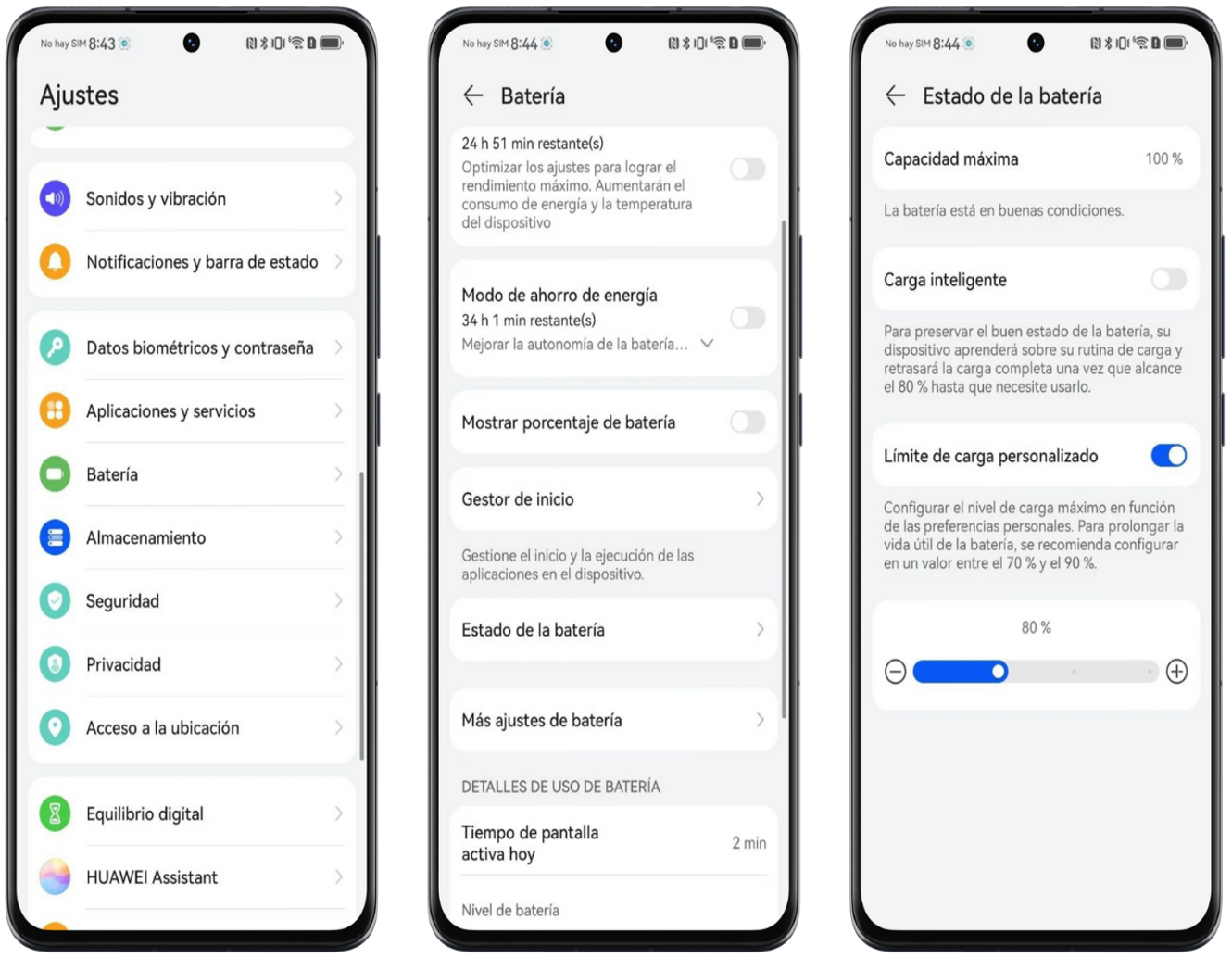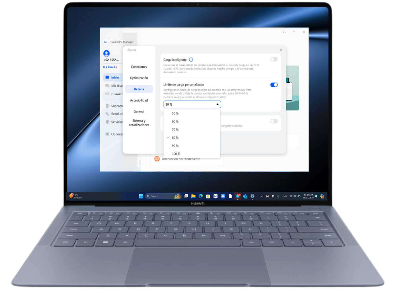 Si tienes una HUAWEI MateBook, puedes limitar la carga de la siguiente manera: