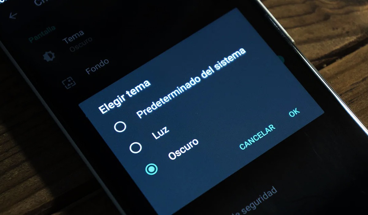- Allí observarás la función llamada “Tema”. Pulsa sobre él y notarás tres opciones: Predeterminado del sistema, luz y oscuro.