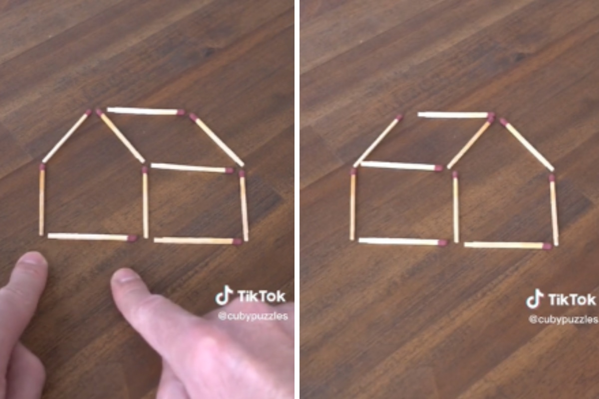 En este juego mental que llega por cortesía del usuario de TikTok ‘@cubypuzzles’ aparece una casa armada por cerillos o palitos de fósforo. El reto está en cambiarle de dirección moviendo solo dos de los soportes, de manera que debería resultar bastante sencillo.