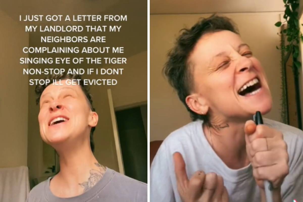 “Acabo de recibir una carta de mi arrendador que dice que mis vecinos se quejan de que canto Eye of the Tiger sin parar y si no paro, me desalojarán”, cuenta en uno de los videos compartidos en su perfil ‘@thomboi__’