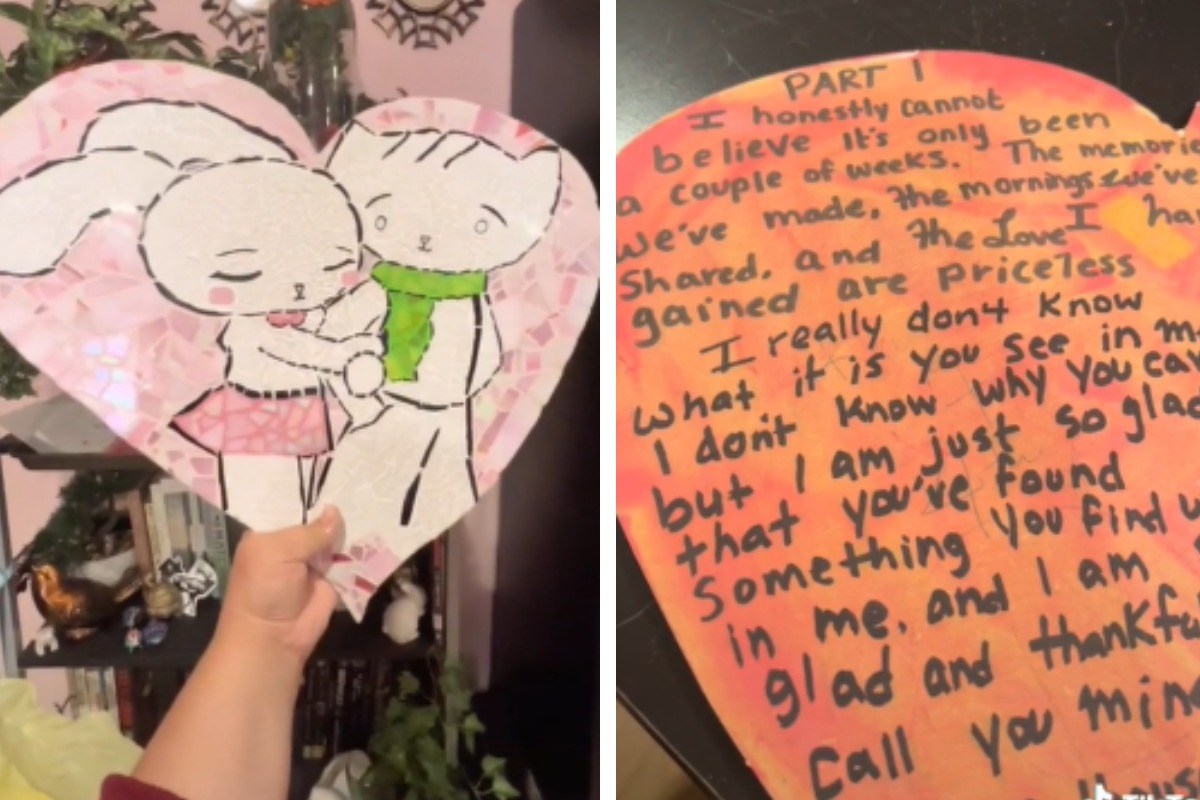 Kayle Powell contó su extraño caso en la plataforma. “Nunca esperé volver a ver esto. Honestamente, pensé que probablemente se había deshecho de él inmediatamente después de la ruptura”, señala la joven de 26 años en el video mientras sostiene una especie de carta con una tapa de mosaico.