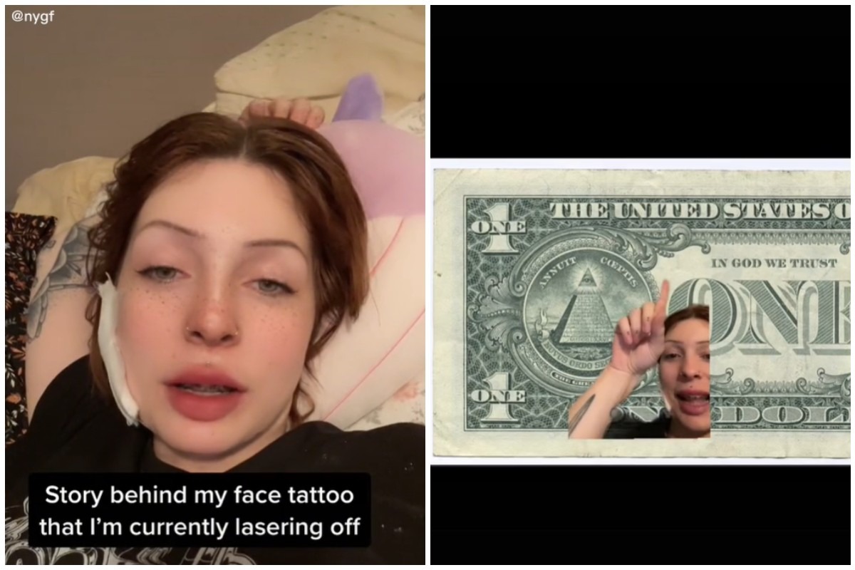 Pero, una vez terminado el dibujo, la mujer quedó paralizada al ver el resultado. “Así que me tatúa la cara y luego llego al espejo. Como pueden ver, la mirada en mi rostro… no era divertido. No estaba feliz”, reveló la joven publicando una foto de ella con el dibujo final. Pero, lo más extraño fue de dónde sacó la idea el tatuador: le hizo un adorno de un billete de un dólar.