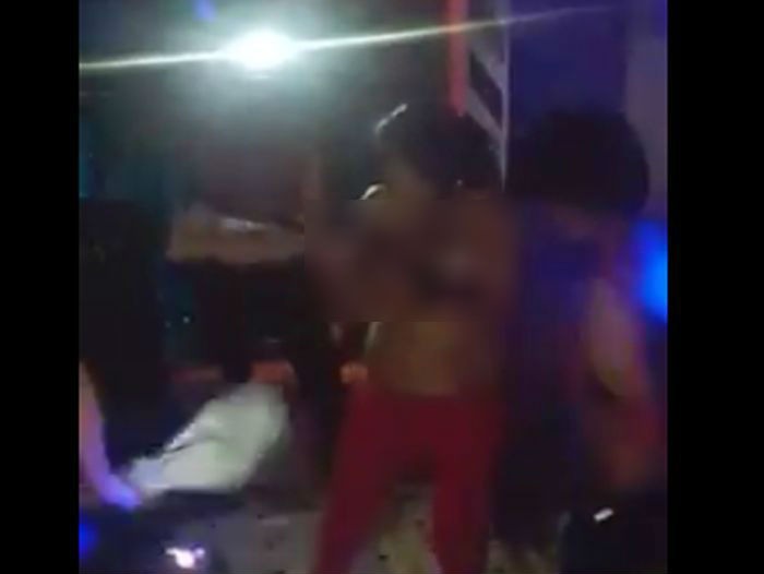 "Sigue grabando, sigue grabando", es lo que se escucha decir a un joven en el video de Facebook. La joven se defiende y cae aparatosamente en un cuarto que parece ser un baño del local. Todo termina cuando un hombre aparece en escena y los jóvenes de alejan.
