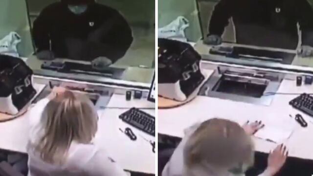 Facebook | Una de las cámaras de seguridad de un banco de Moscú, Rusia, captó el momento en que un ladrón se aproxima a una de las ventanillas con la intención de llenar su bolsa con todo el dinero posible.