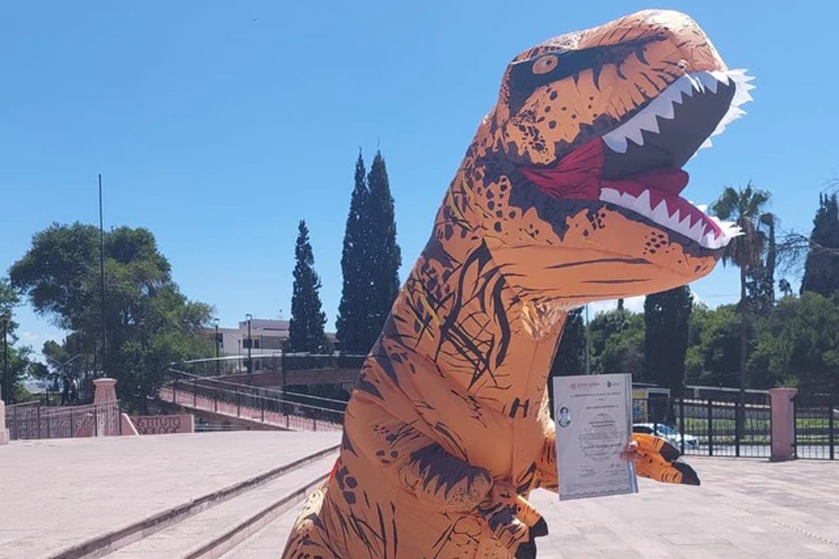 A través de Facebook se han hecho virales las fotos de un joven que se graduó de la carrera de Ingeniería de Sistemas Computaciones en México y sorprendió a muchos yendo a recoger su diploma vestido de un enorme dinosaurio anaranjado.