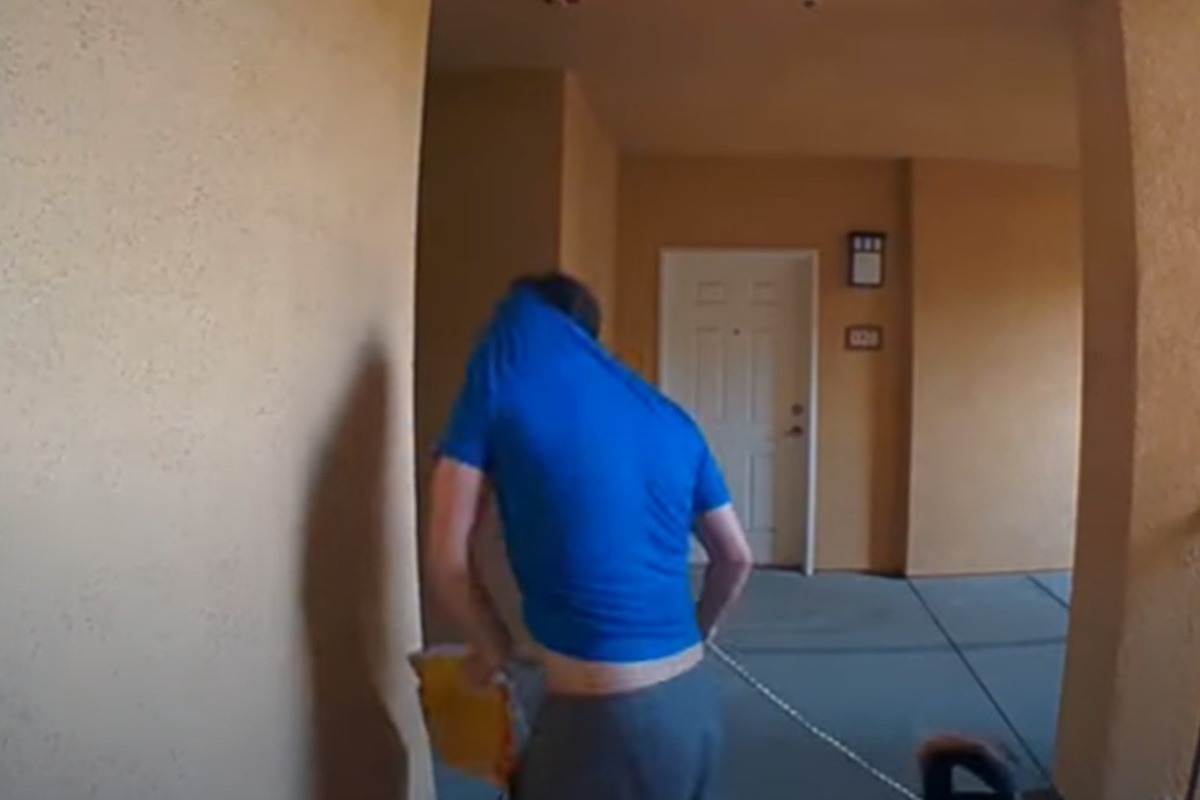 El muchacho, aparentemente, regresaba a su casa luego de pasear a su perro, cuando de pronto vio que en la puerta de su vecino había un paquete solitario en el suelo. Ello motivó al chico a robarlo. Con el fin de no ser identificado por la cámara de seguridad, él se cubrió el rostro con su polo; sin embargo, se olvidó que segundos antes había sido grabado, por lo que los dueños del departamento rápidamente supieron quién era el delincuente y lo denunciaron.