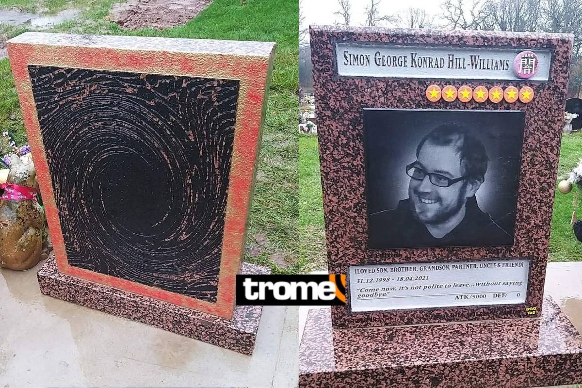 Fotos de la lápida temática de Yu-Gi-Oh! de Simon Hill-Williams