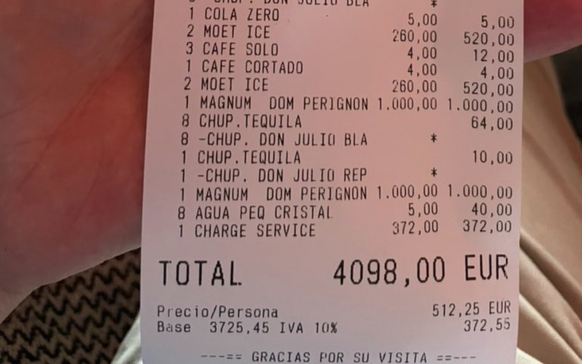 El comensal explicó: “un club de Marbella, nos cargan 372€ de servicio, pagamos y nos levantamos, el camarero viene corriendo cabreado preguntando si no íbamos a dejar propina. Marbella el nuevo Ibiza, engañabobos everywhere”.
