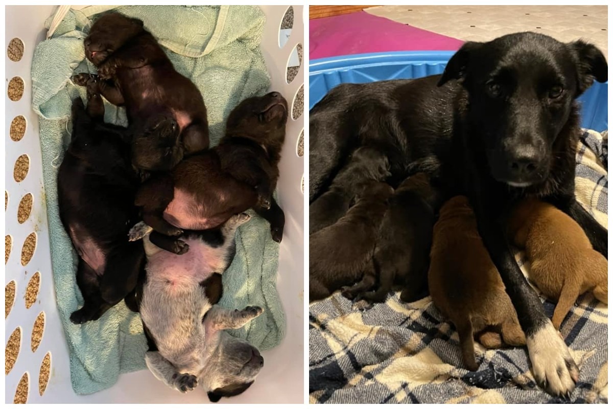 Entre estas dos tristes historias, Johnson vio una oportunidad para que los cachorros y Pepper encontraran el amor que buscaban. Los voluntarios del albergue Ruff Start Rescue emparejaron a los recién nacidos huérfanos con la perra en duelo, y la nueva familia hizo clic de inmediato.