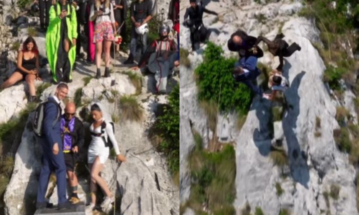 Una pareja de novios dejó de lado lo tradicional y se casaron de la forma más impensada posible, pues se unieron en matrimonio vestidos como la ocasión amerita, pero saltando desde un acantilado, siendo acompañados por sus invitados. El momento llegó a las redes sociales donde se hizo viral de inmediato.