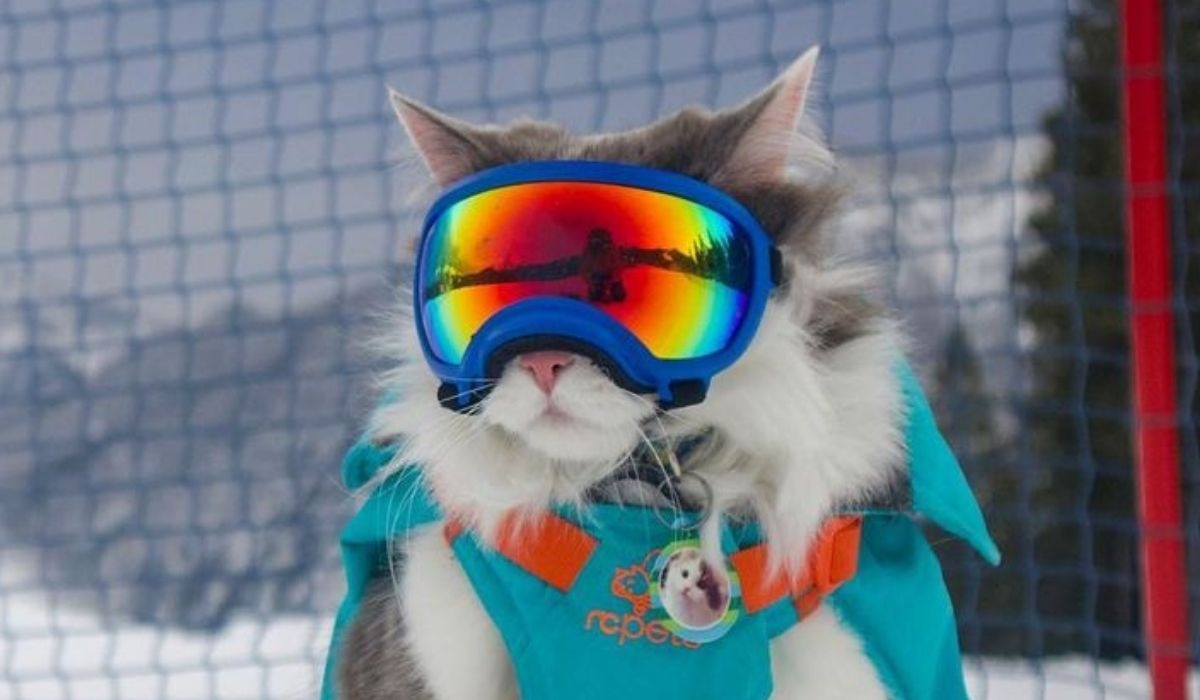 Como se puede observar en su cuenta de Instagram, la cual es seguida por más de 386.000 internautas, este rechoncho y simpático minino gusta hacer esquí al lado de sus propietarios.