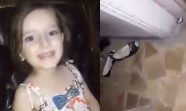 En las imágenes se puede ver que una niña canta alegremente, al parecer en compañía de su madre, cuando de pronto se escucha una fuerte explosión que la aterroriza.