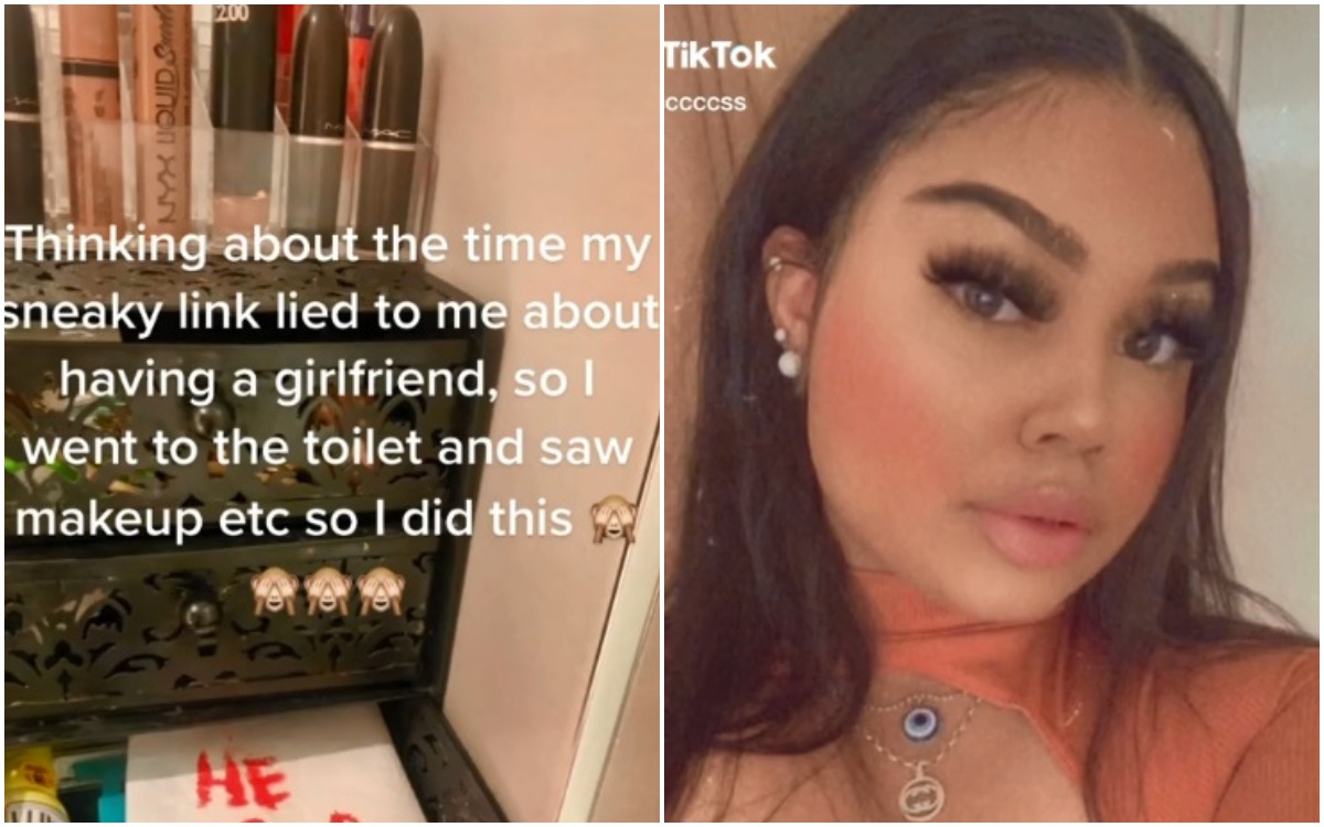 “Pensando en la vez que mi cita me mintió sobre tener novia”, escribió la usuaria en la descripción del clip, que no tardó en volverse viral. “Fui al baño y vi maquillaje, así que hice esto”.