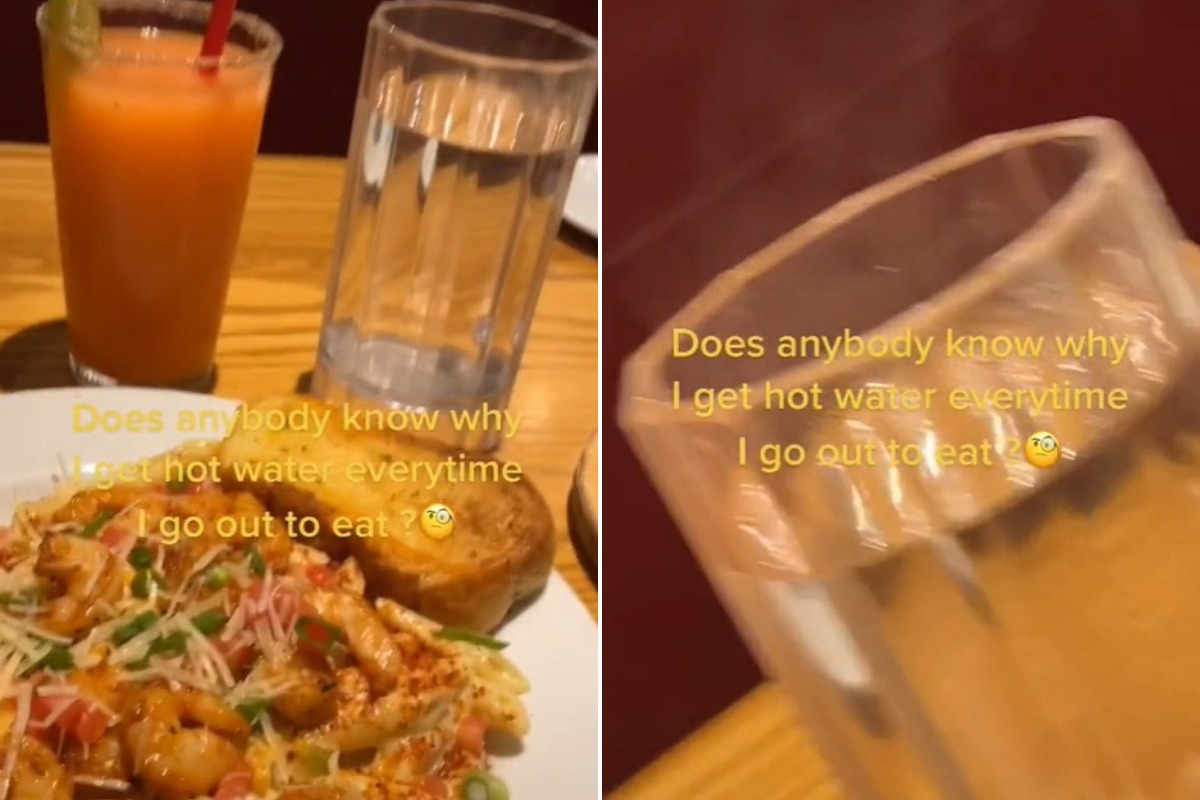 La mujer ordenó un plato de pasta, un aparente vaso de jugo y un vaso de agua bien caliente. Por esto último es que hizo una pregunta a sus seguidores: “¿Alguien sabe por qué recibo agua caliente cada vez que salgo a comer?”.