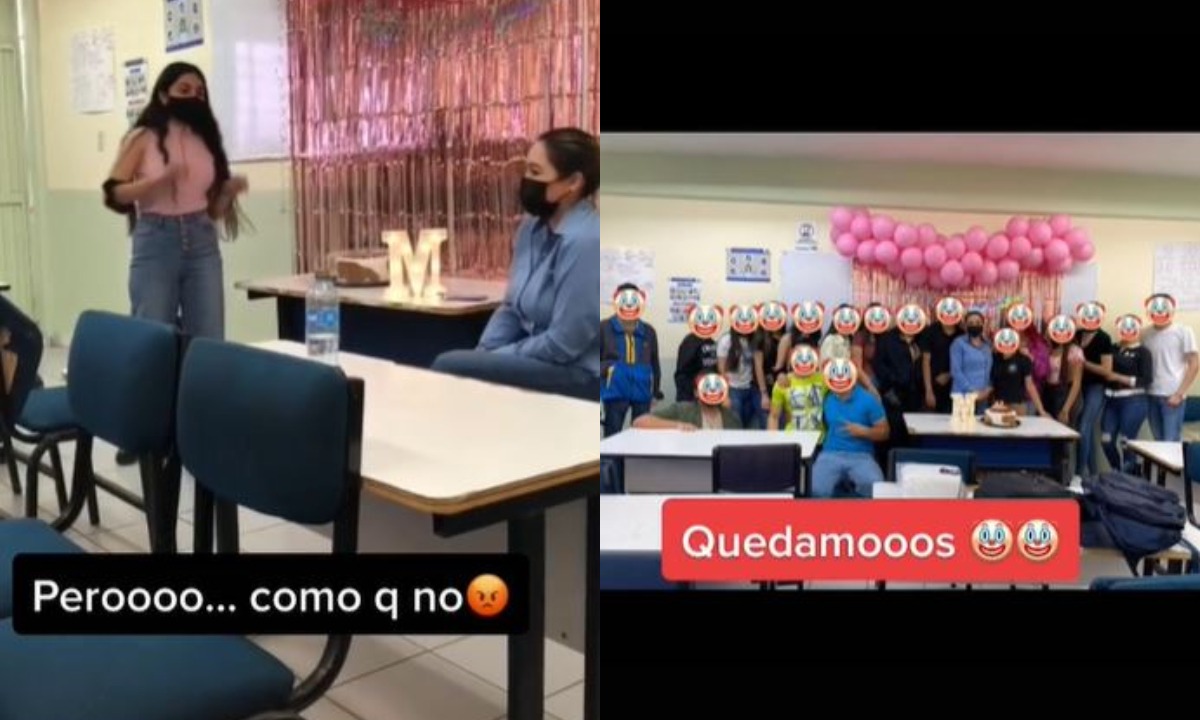 Muestran una foto de todos en el aula: “Una foto con ella. A huevo”, pero luego se enteraron que dicha fecha no era el día del onomástico de la educadora. De inmediato, el video ha acumulado más de 6.8 millones de reproducciones con miles de comentarios que le gastan bromas a los estudiantes: “Festejaron el feliz no cumpleaños”, “al final dijo, ‘mi cumpleaños no es ahora’”, “parece que solo lo hicieron para no tener clases”.