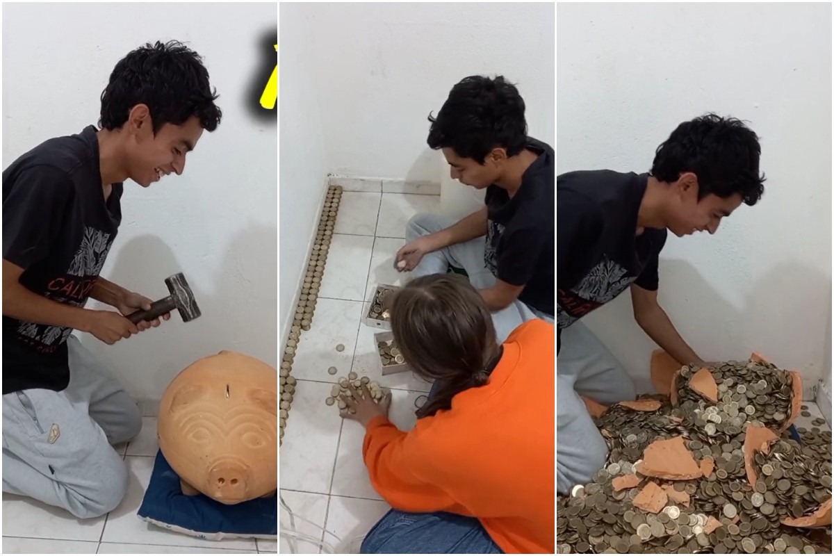 Este contenido muestra que un chico estaba rompiendo un gran chancho para sacar todo el efectivo que había logrado conseguir, en el cual había metido más de 10 millones de pesos colombianos, lo equivalente a más de 2 mil dólares.