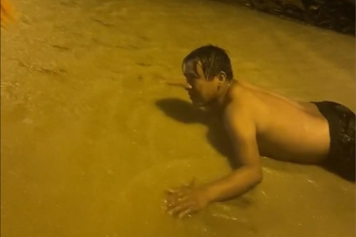 Fue a través de TikTok que el usuario Franklin Angulo Valiente compartió el breve clip de apenas 16 segundos de duración, en el cual se observa a dos señores en la calle bajo la lluvia. Uno de ellos se encuentra sobre una tina y utiliza una escoba como remo; mientras el otro se encuentra tirado en la calle cubierta de agua haciendo como que se ahoga.