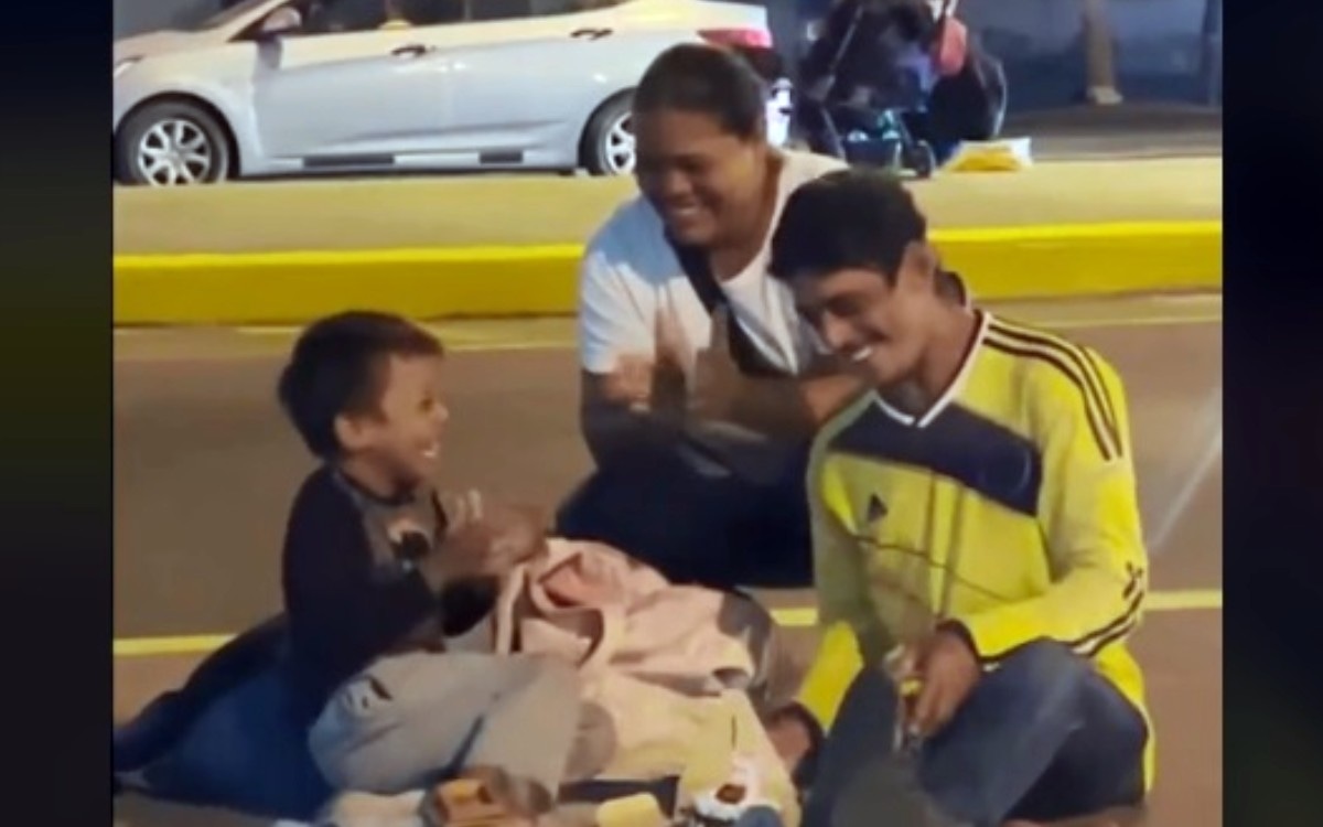 Pareja se vuelve viral por celebrar el cumpleaños de su hijo en medio de la calle