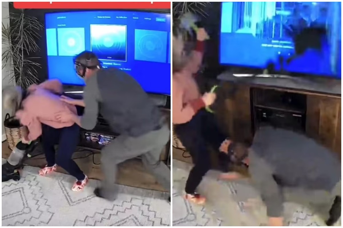 De esta manera, la sorpresa fue tanta que la mujer giró de forma rápida para atacar a su esposo, quien logró esquivar el golpe de la aspiradora, logrando que esta impacte con la pantalla del televisor, provocando que se dañe de manera irreparable. La escena termina con ambas personas asustadas y sorprendidas por lo ocurrido.