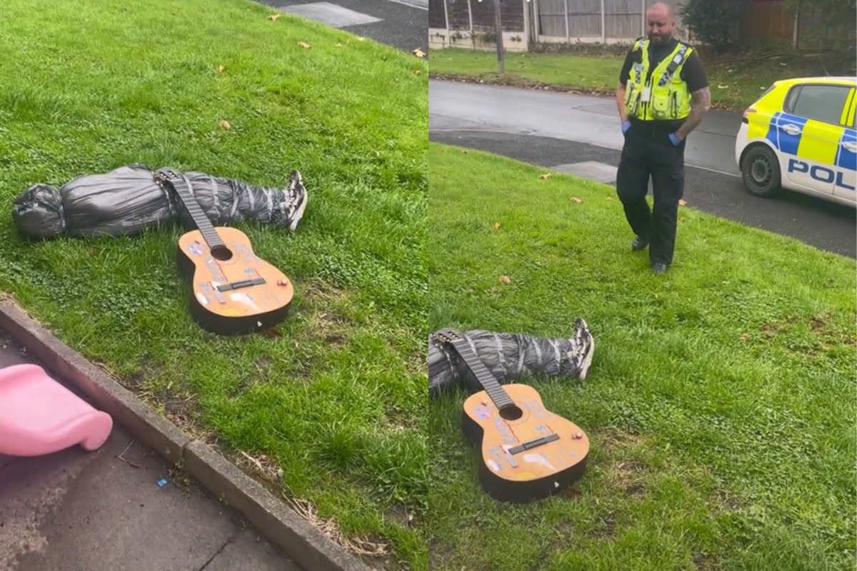 El hecho sucedió en Reino Unido y fue dado a conocer mediante TikTok por la usuaria @Daniellet93, quien decidió colocar en el patio de su casa un cuerpo de mentira envuelto en una bolsa negra. El adorno le quedó tan real que hizo dudar al oficial de turno que bajó de su vehículo para cerciorarse que no lo era.