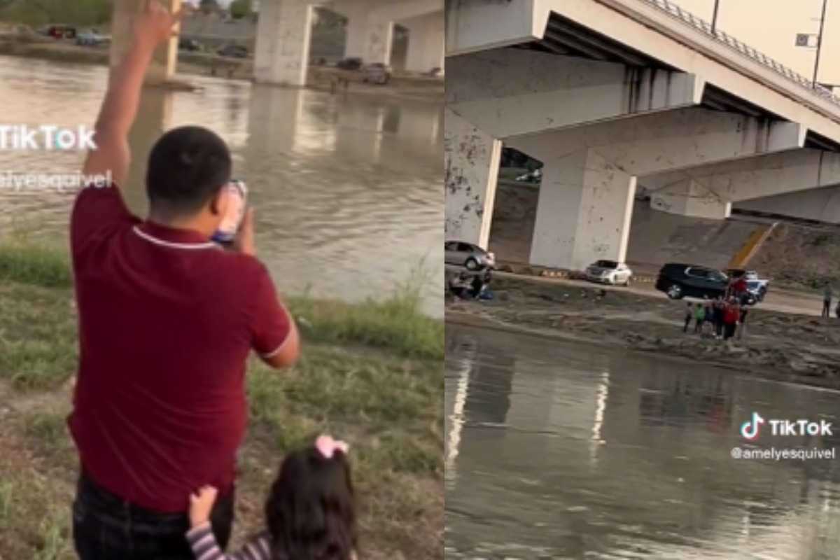 En este clip compartido por la usuaria de TikTok ‘@amelyesquivel’ se observa cómo un hombre junto a su pequeña hija saludan a la distancia a su familia que se encuentra al otro lado del río, y es que se encuentra imposibilitado de cruzarlo pues se trata de la frontera de México y Estados Unidos.