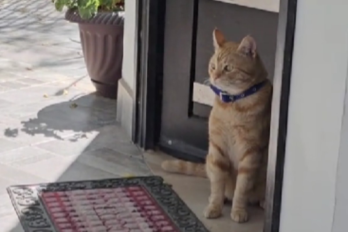 Sin embargo, este sonido pareció haber incomodado a este animal, el cual después de oír esta melodía intentó alejarse de la puerta principal para observar a esta persona desde lejos estando a salvo. Además, este felino parece encontrarse a la defensiva para ver si debía reaccionar de una manera más fuerte.