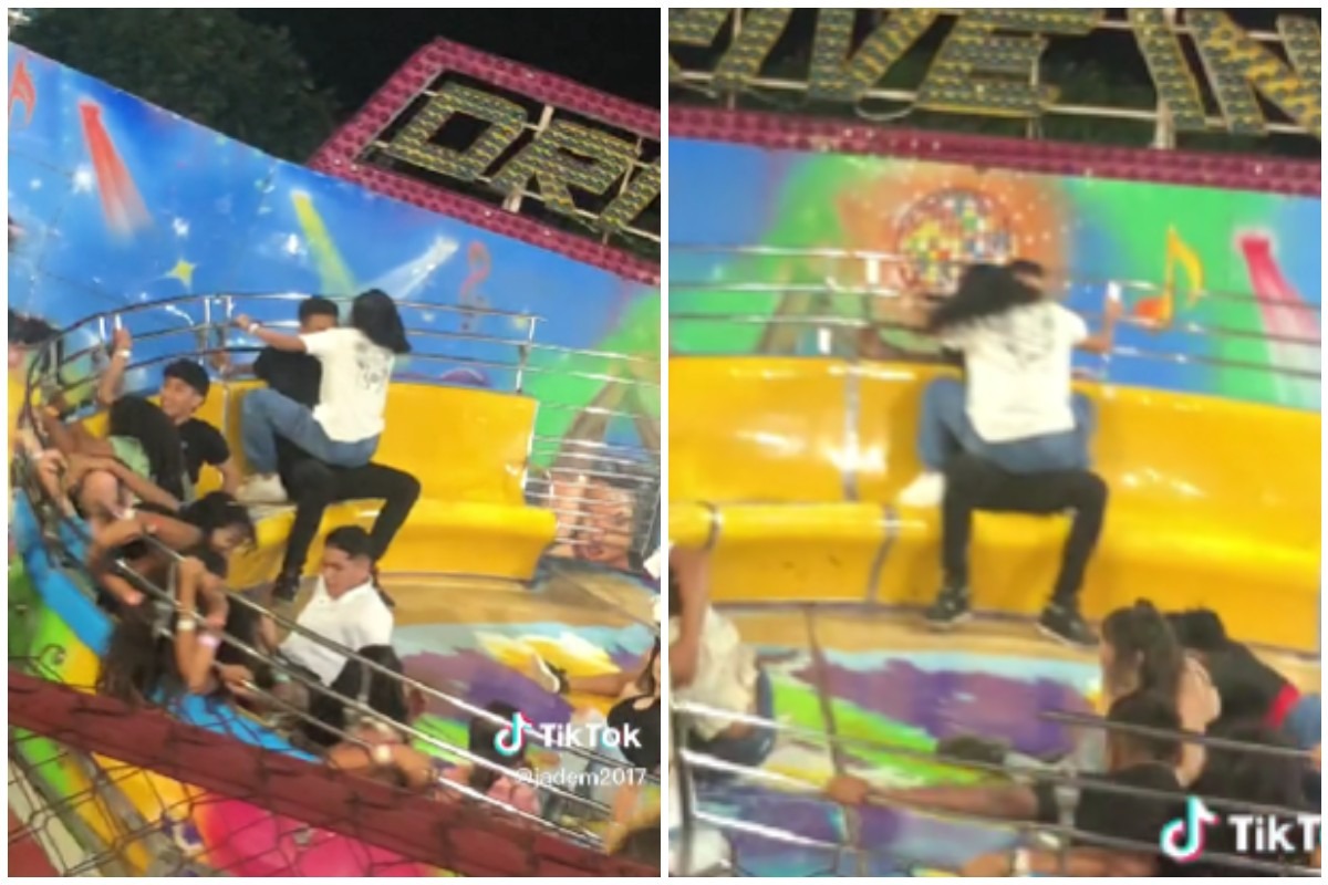 Por otro lado, si bien hay personas que estaban casi echadas en el piso de esta atracción, por los bruscos movimientos, fue la pareja quien llamó más la atención, mostrando que la muchacha se elevaba por los aires y caía con mucha fuerza encima del que sería su enamorado.
