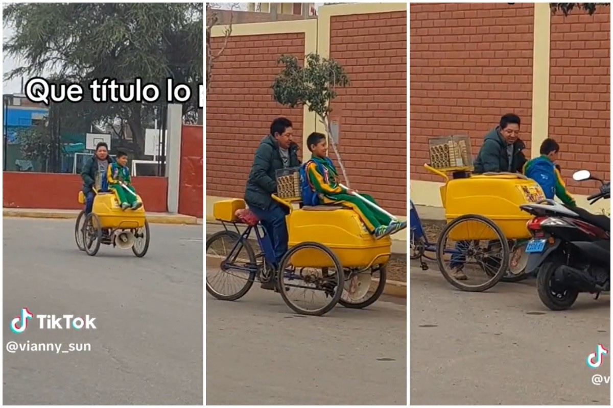 Desde la cuenta de TikTok @vianny_sun, se ha podido ver la forma en la que un hombre llevó al colegio a su hijo, puesto que, lejos de usar algún tipo de transporte convencional, este sujeto condujo un carrito de helados con el pequeño encima para llegar a tiempo a la institución educativa. En el video se ve que este niño estuvo sentado en la parte superior del triciclo.