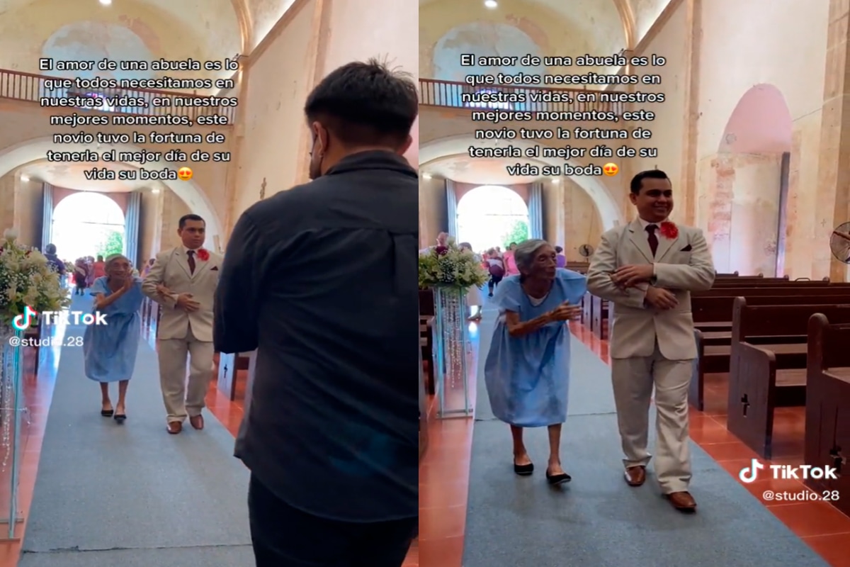 Fue a través de TikTok que el usuario @studio.28 subió el clip que se ha robado el corazón de miles de internautas en la plataforma. En la grabación se puede apreciar al novio con traje beige ingresando con la adulta mayor a la iglesia. Ella lo tiene cogido del brazo y van caminando sonrientes ante la presencia de los invitados.
