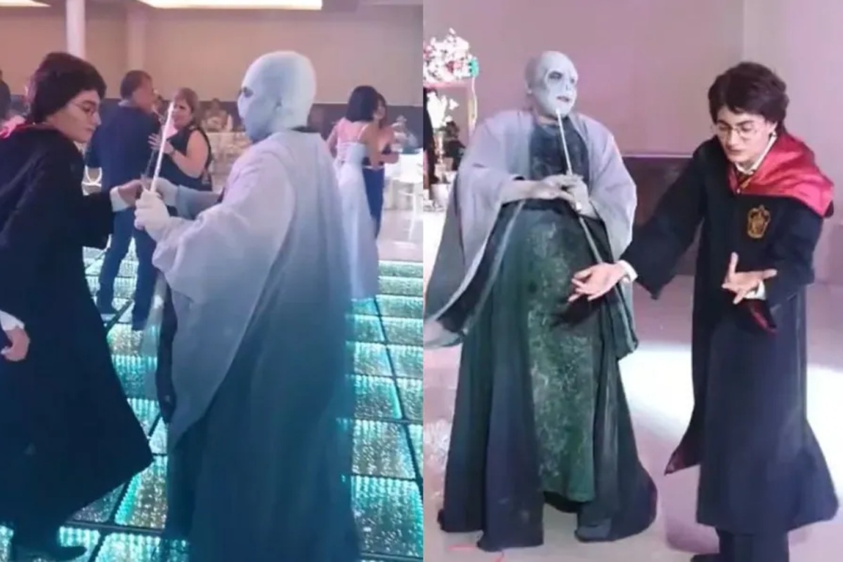Las fiestas temáticas se han puesto muy a la moda y muchos tienen ideas muy creativas para realizarlas. Como es el caso de una joven que durante su cumpleaños decidió llevar a nada más y nada menos que al mago más querido del mundo, Harry Potter, y a su eterno enemigo, Voldemort.