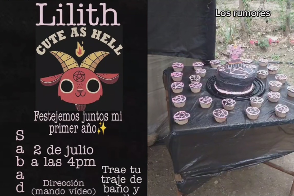 Una madre de familia, identificada como Janeth Zapata, ha generado polémica en TikTok, @anethzapata31, al mostrar la manera en que celebró el primer año de vida de su bebé de nombre Lilith Alexa, con una reunión temática del diablo. En las fotos que incluye en su clip se aprecia como todos los adornos, el pastel, la piñata y los cupcakes eran de color negro con el pentagrama invertido asociado al satanismo; incluso la invitación tenía un demonio color rojo y decía “Lilith cute as hell”.