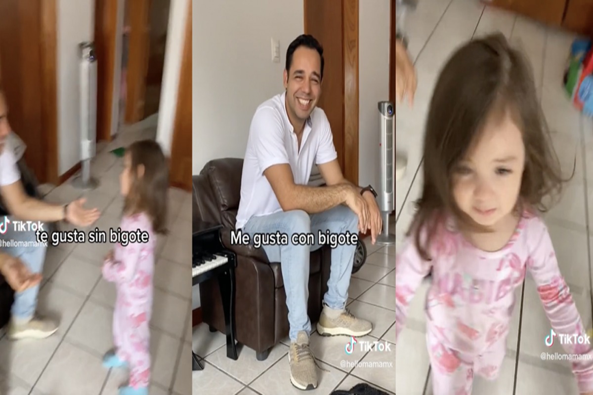 Fue a través de TikTok, que la usuaria @hellomamamx difundió el hilarante video en donde se muestra la desconsolada tristeza de su hija al ver a su papá afeitado. El clip que muestra la inesperada reacción de la niña que se titula “Papá se quita el bigote por primera vez” rápidamente ha sumado millones de visualizaciones y es uno de los videos más vistos de la plataforma.