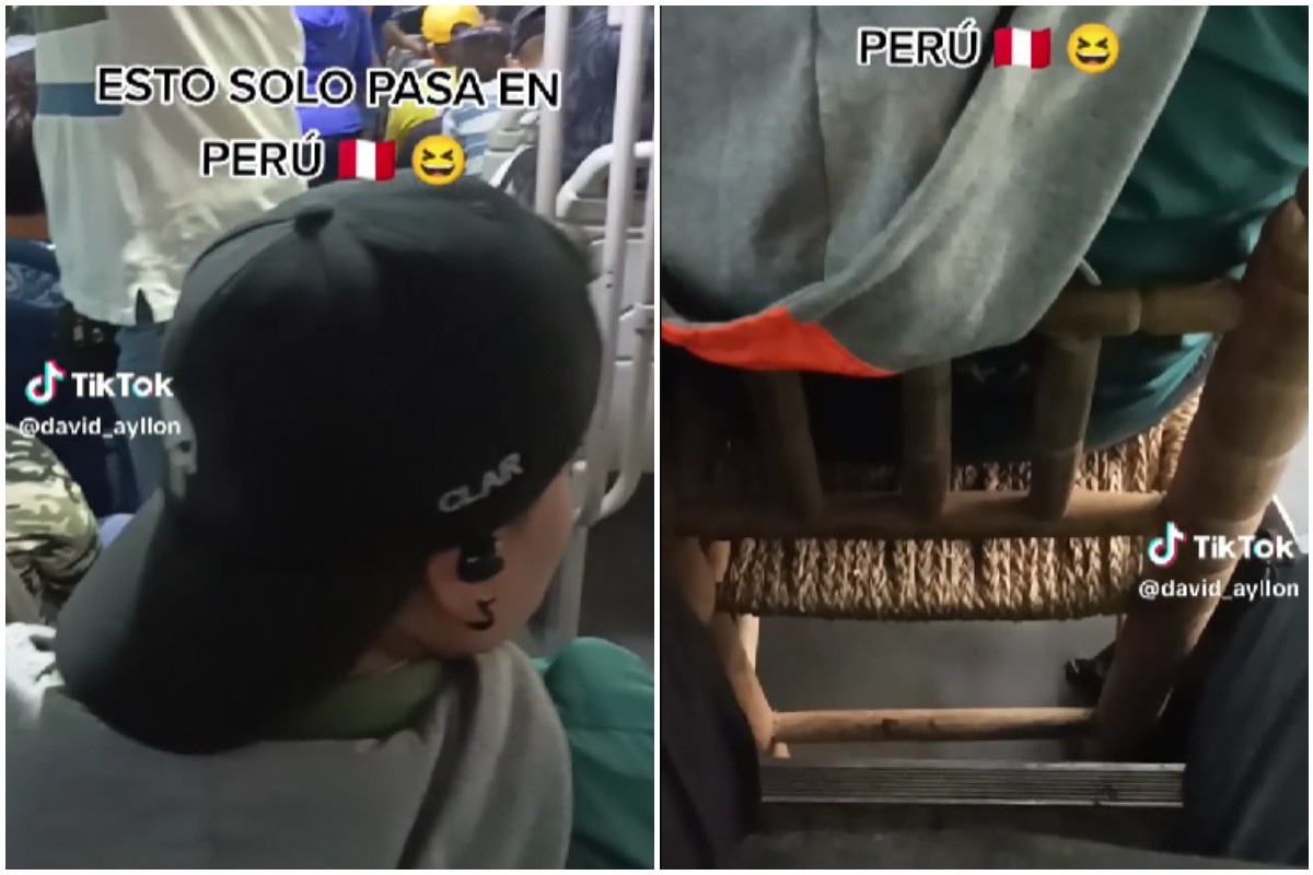 “Esto solo sucede en Perú”, dice el clip para bromear un poco con lo que mostraría la escena, la misma que muestra el interior de un autobús lleno de gente; sin embargo, lo que llamó más la atención fue la forma en la que una persona estaba viajando, puesto que, lejos de estar sentado en un asiento del automóvil, el muchacho que cautivó las miradas estaba encima de una silla de comedor, la cual aparentemente era de su vivienda.
