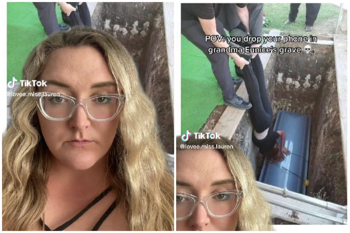 “Afortunadamente era un teléfono y no el pequeño Timmy Jr”, dice ella en la descripción del contenido, el mismo que revela la forma en la que pudo rescatar el celular que se le había caído dentro del lugar en donde estaba siendo enterrada su difunta abuela. El clip muestra que esta persona fue ayudada por dos hombres para alcanzar el móvil.