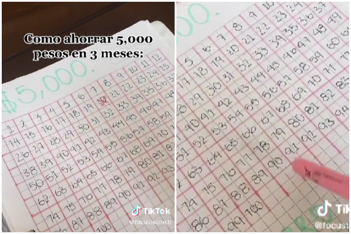 “Cómo ahorrar 5 mil pesos en tres meses”, dijo ella en la descripción del contenido, el mismo que mostró que esta persona tenía un papel en donde escribió todas las fechas de este tiempo. Segundos después reveló que su estrategia constaba en guardar la cifra que indicaba la fecha, puesto que, si ella elegía el número 10 o 25, debía ahorrar este monto en un frasco.