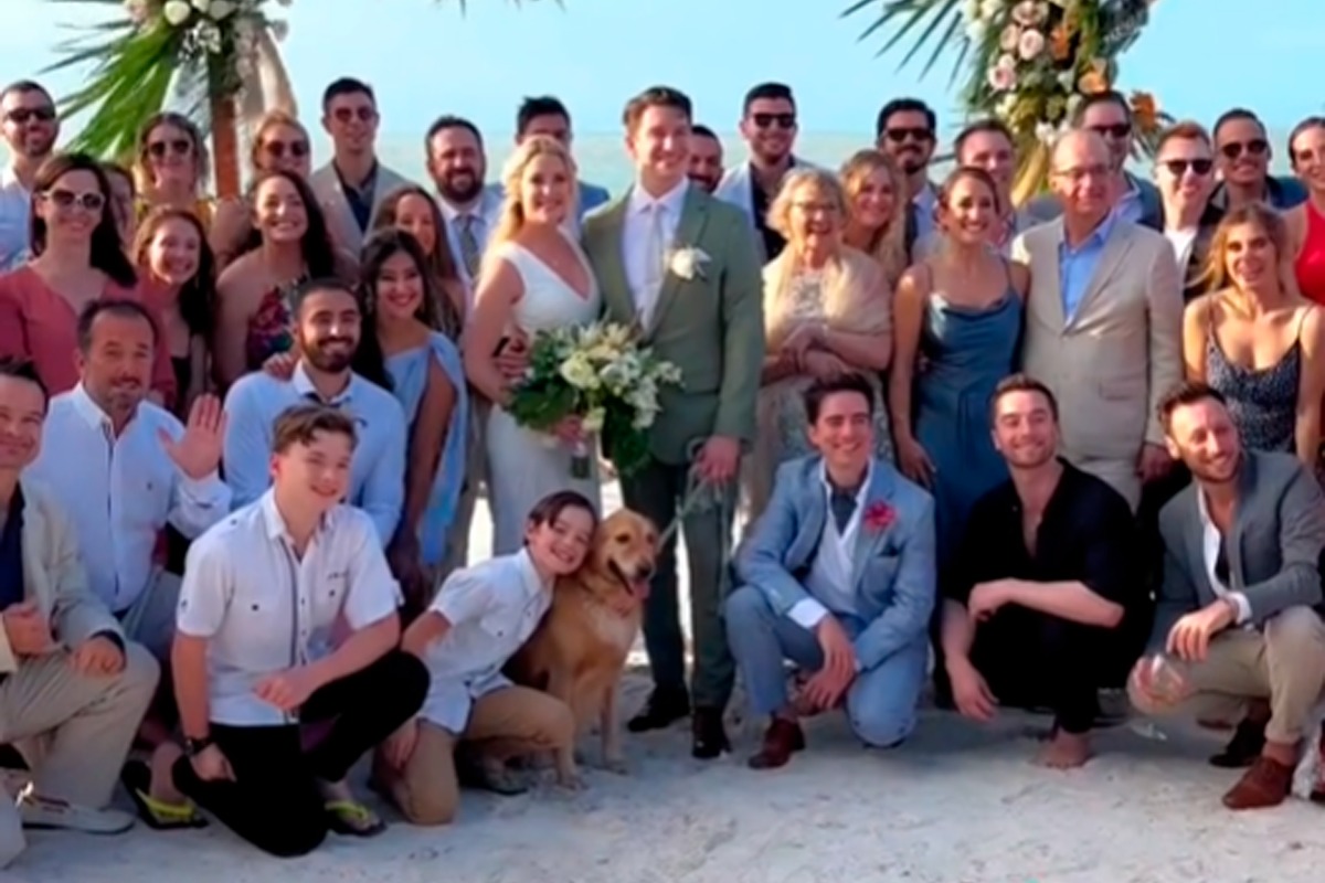 En las imágenes Jahir Jiménez, el dueño de Murph, da cuenta de como su perro disfrutó mucho de la boda celebrada en las playas de Quintana Roo, mientras él se encontraba a un costado alejado de la ceremonia como un simple espectador.